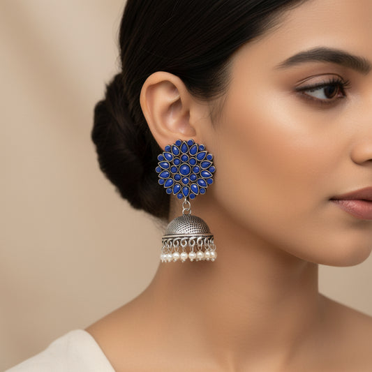 Fearless flower jhumki earring (Blue)