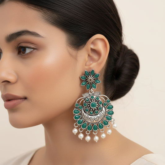 Stunning stone studded jhumki earrings (Green)