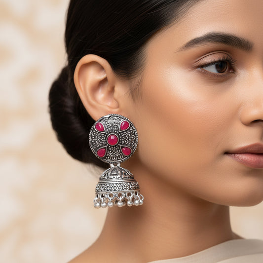 Royal Rajwada Jhumka earrings (Red)