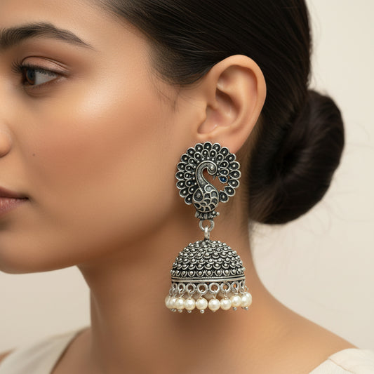 Mayur magic jhumka earrings (Silver)