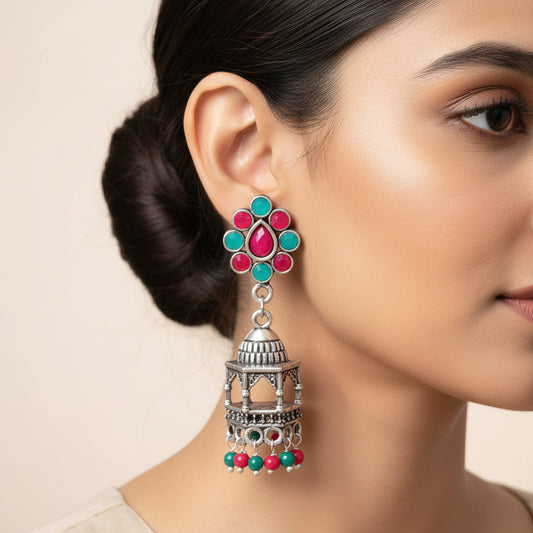 Floral Jharokha jhumki earrings (Multicolored)