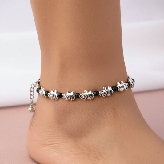 Timeless tinkle oxidised anklet (Silver)
