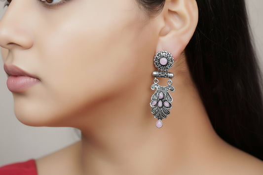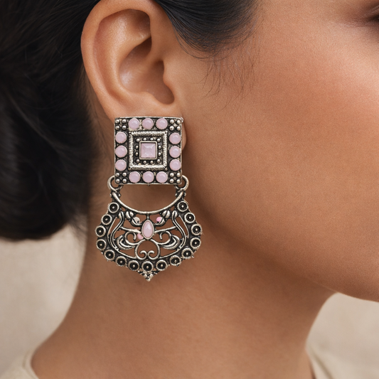 Swirly stone studded dangler earring (Baby Pink)