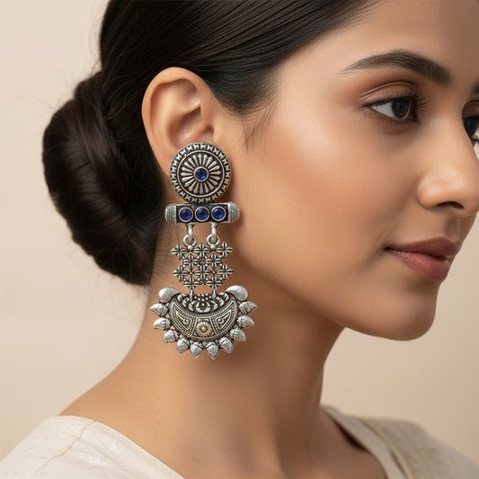Beauty Bloom ghunghroo jhumki earring (Blue)