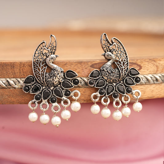 Peacock pearls studds earrings (Black)