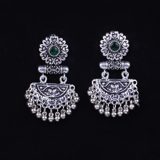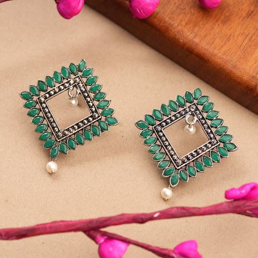 Wonderful wildflower oxidised stud earrings (Green)