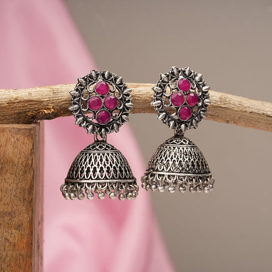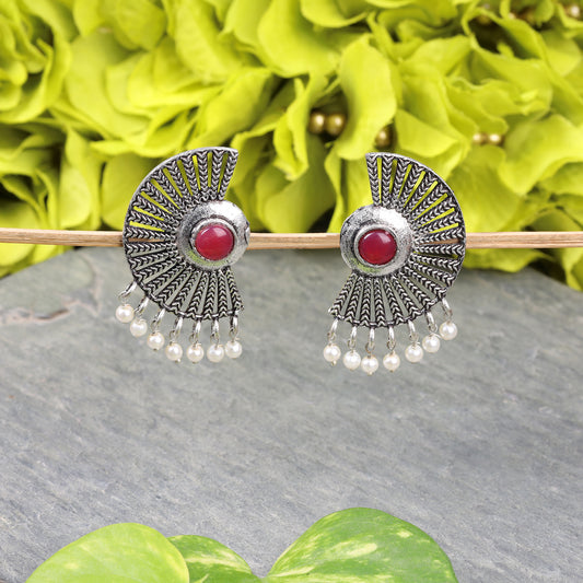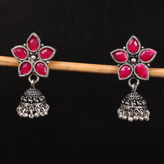 Wonderful wildflower oxidised stud earrings (Red)