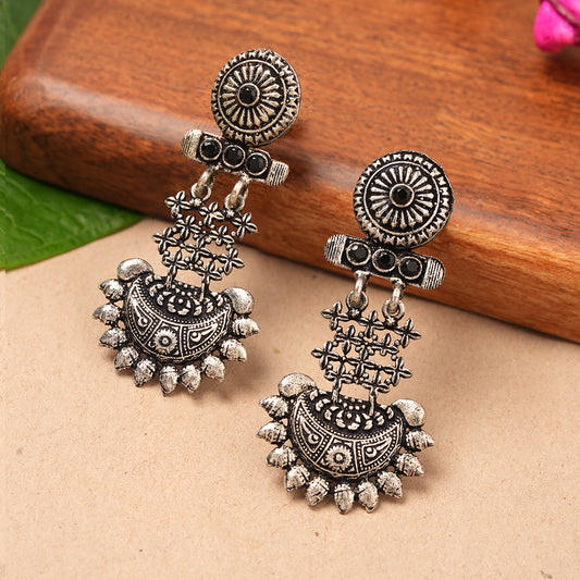 Wonderful wildflower oxidised stud earrings (Grey)