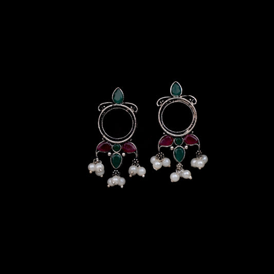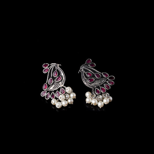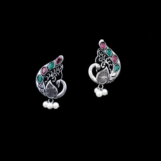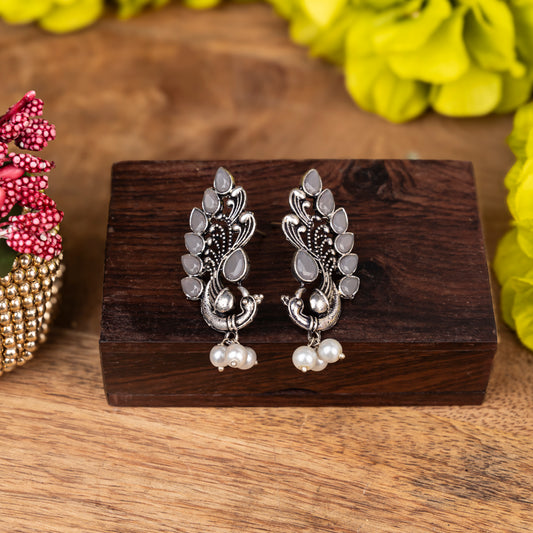 Magic mayur oxidized dangler earrings (Silver)