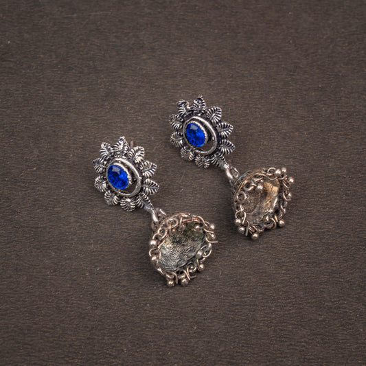 floral charm traditional jhumka earrings (Blue)