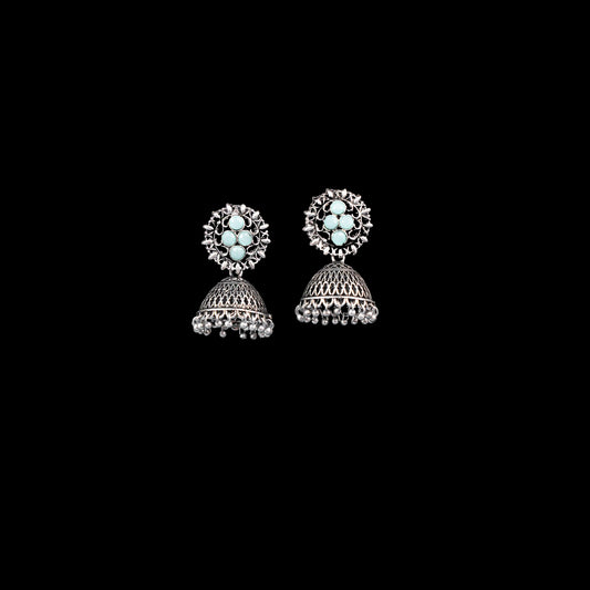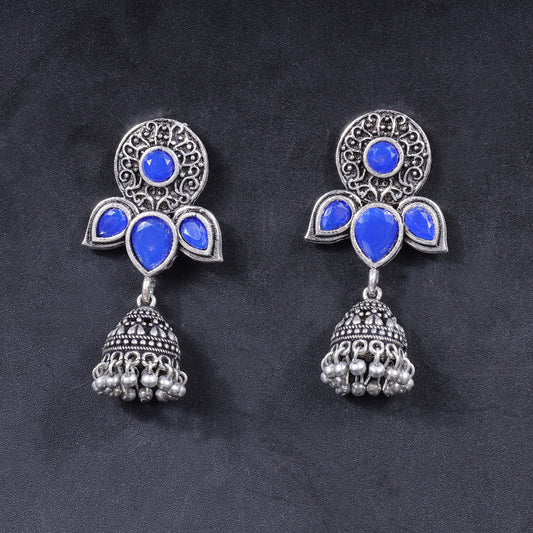 Periwinkle stone studded jhumki earrings (Blue)