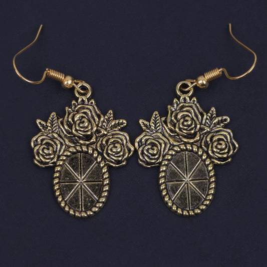 Vintage Oval Flower Shaped Golden Polished Oxidised Danglers