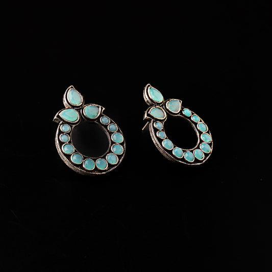Peacock glow stone studded dangler earrings (Multicolored)