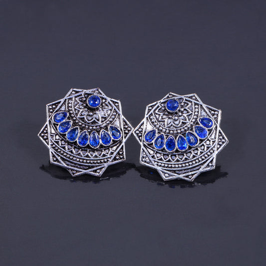 Mandala Hexa stud earrings (Blue)