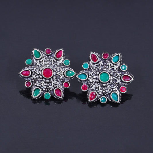 flower-alpana stud earrings (Multicolored)