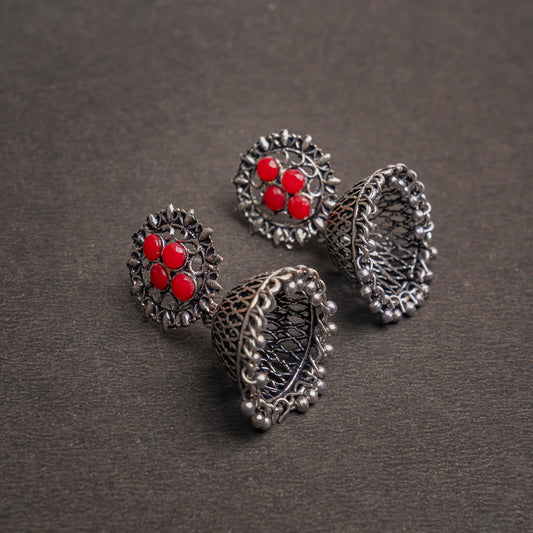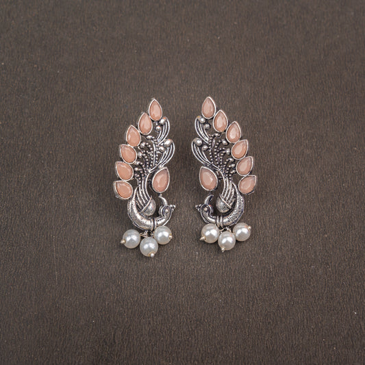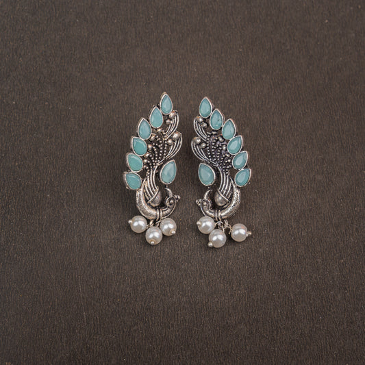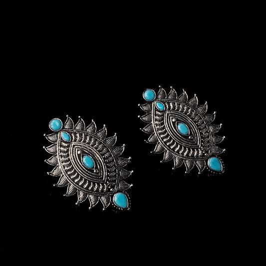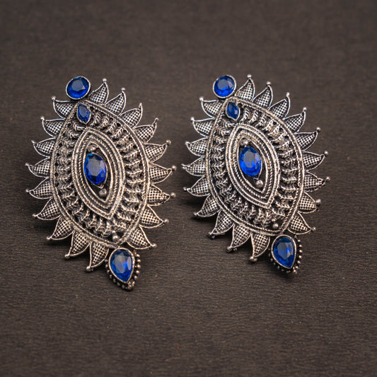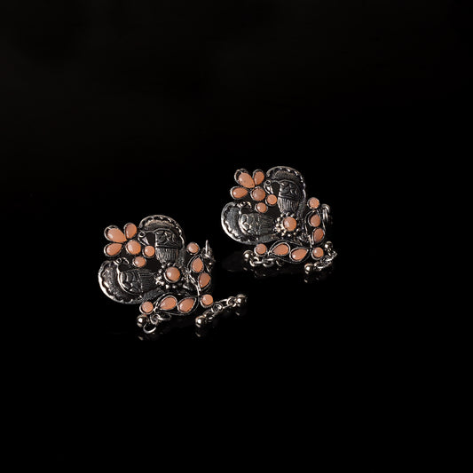 BeadedButterfly stone studded oxidised stud earrings (Multicoloured)