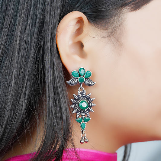 Rain Drop Rani Hanging Jhumki Earrings (Green)