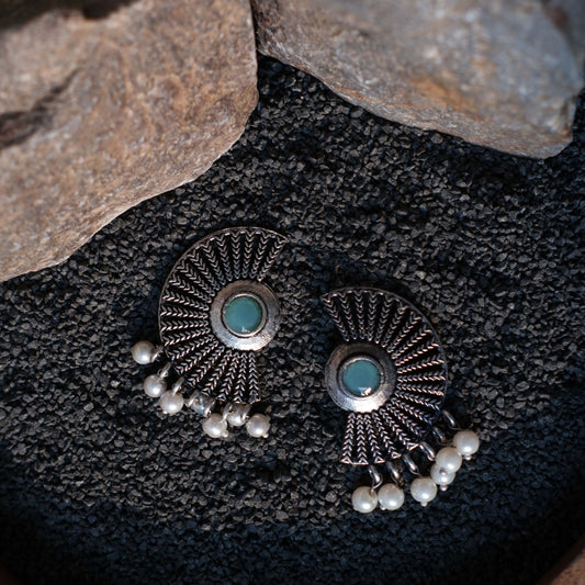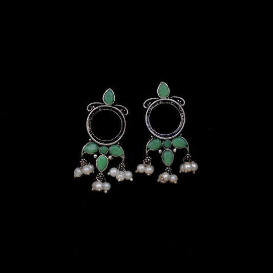 Floral radiance stone studded oxidized rings (Mint)