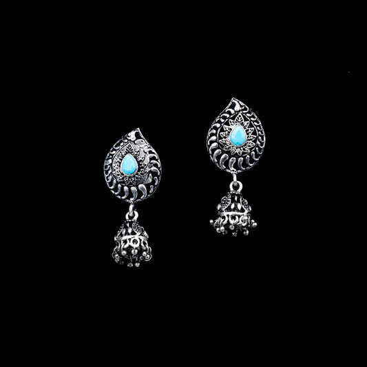 Rain Drop Rani Hanging Jhumki Earrings (Sky Blue)