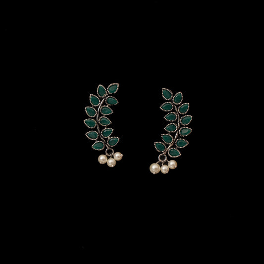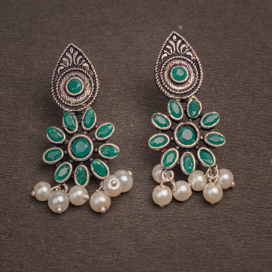 Drew flower pearl stud earrings (Green)