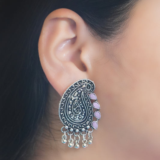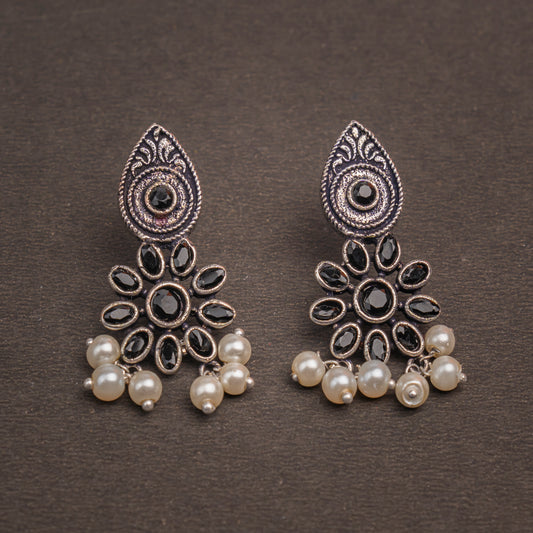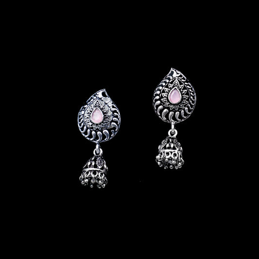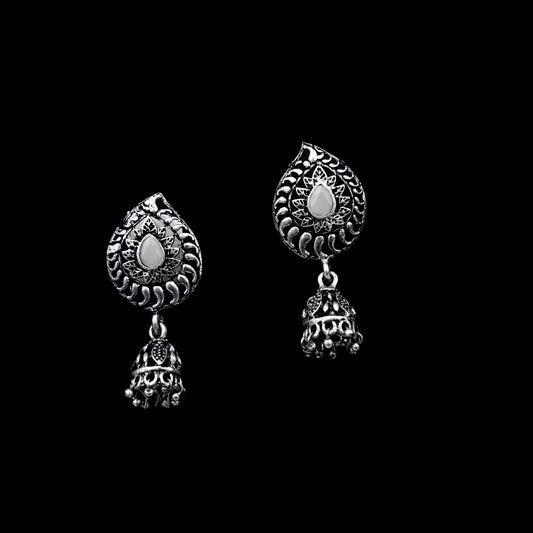 Rain Drop Rani Hanging Jhumki Earrings (Grey)