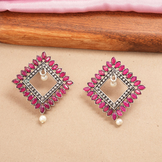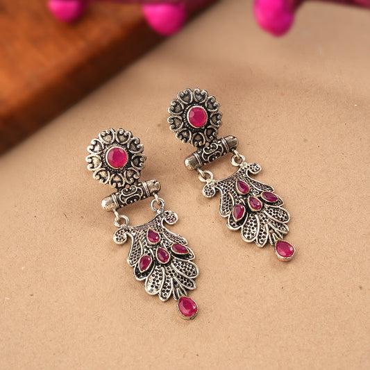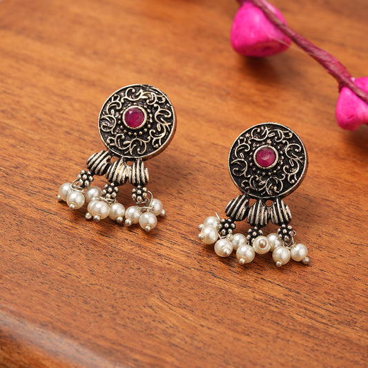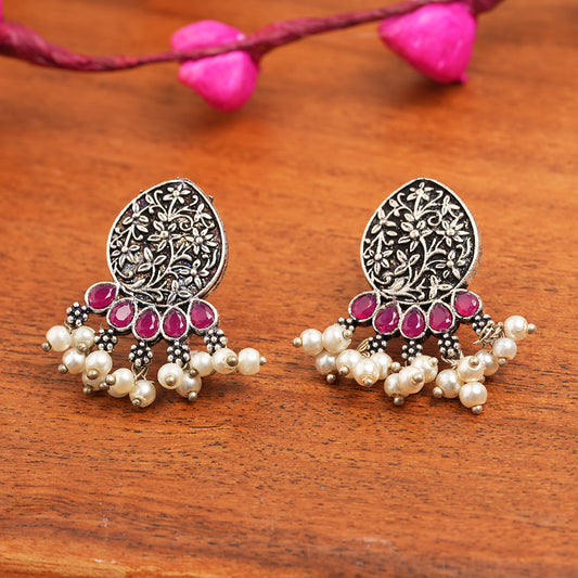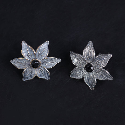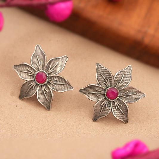 Wonderful wildflower oxidised stud earrings (Dark Red)