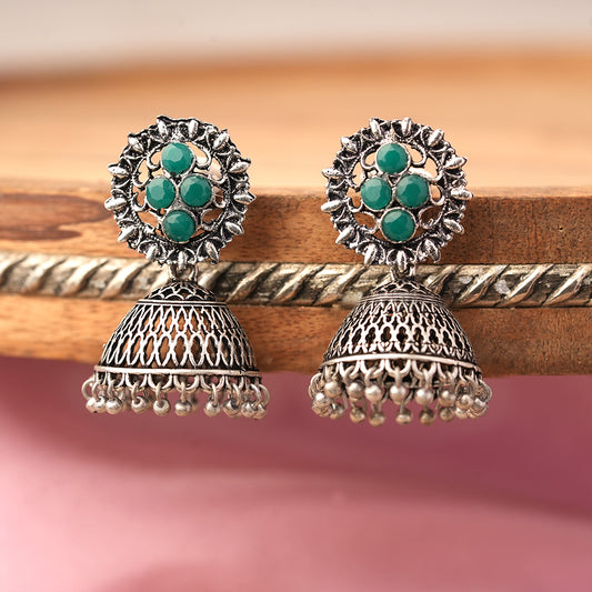 Wonderful wildflower oxidised stud earrings (Mint)