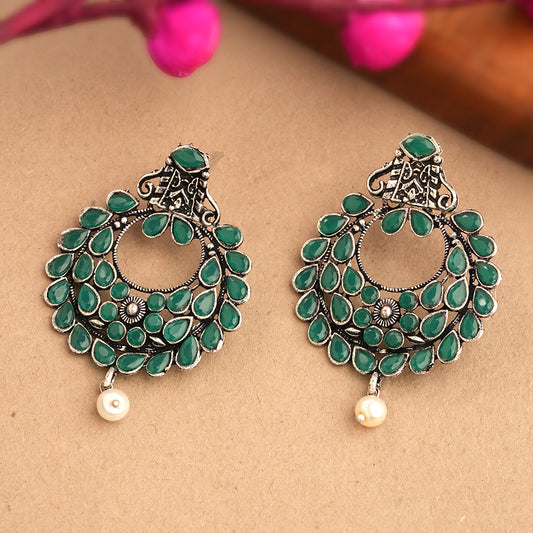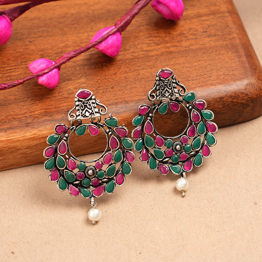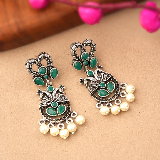 Peacock glow stone studded dangler earrings (Multicolored)