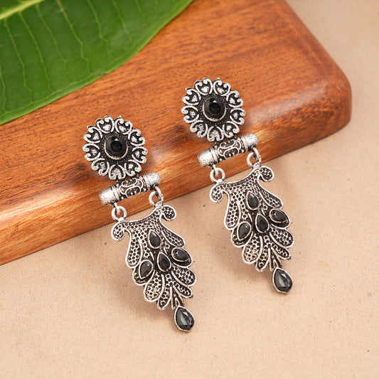Swirly stone studded dangler earring (Black)