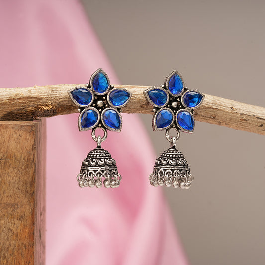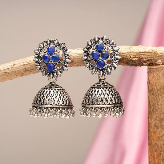 Beauty Bloom ghunghroo jhumki earring (Blue)