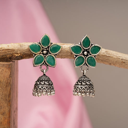 Beauty Bloom ghunghroo jhumki earring (Green)