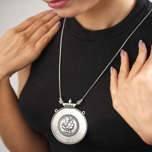 Ganpati goodness oxidized chain neckpiece (Silver)