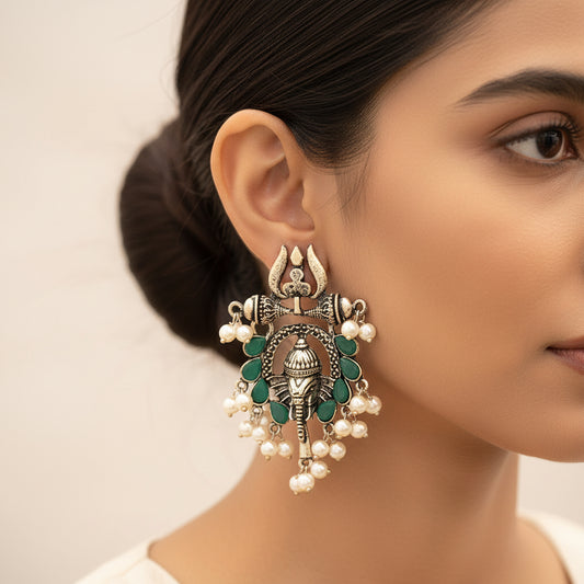 Sacred Sparkle pearl dangler earrings (Green)