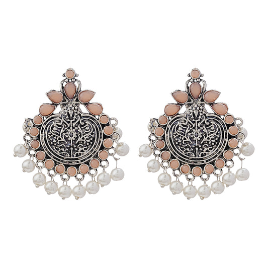 Sacred Sparkle pearl dangler earrings (Baby Pink)