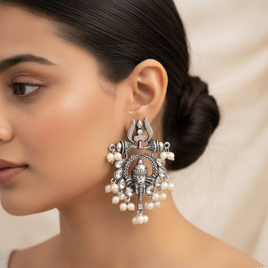 Sacred Sparkle pearl dangler earrings (White)