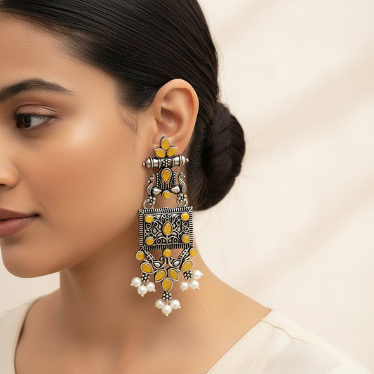 Peaflair pearls oxidised dangler earrings (Yellow)