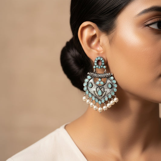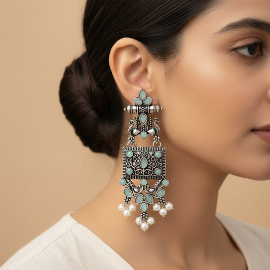 Peaflair pearls oxidised dangler earrings (Mint)