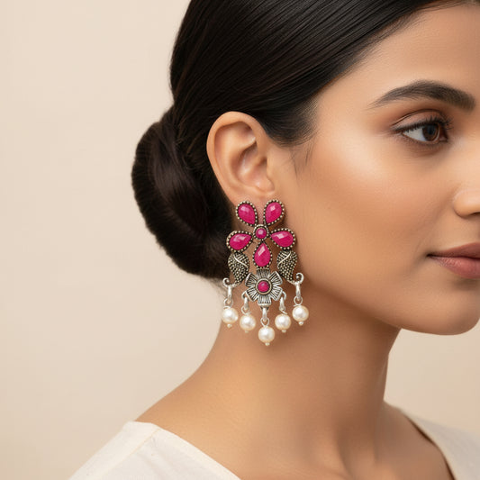 Wonderful wildflower oxidised stud earrings (Red)