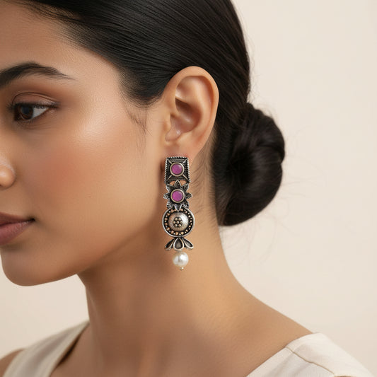 Wonderful wildflower oxidised stud earrings (Baby Pink)