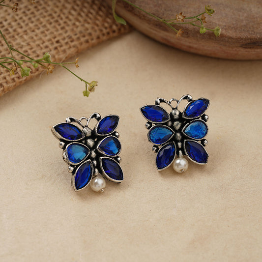 BeadedButterfly stone studded oxidised stud earrings (Blue)