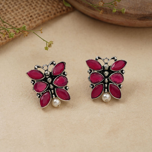 BeadedButterfly stone studded oxidised stud earrings (Red)