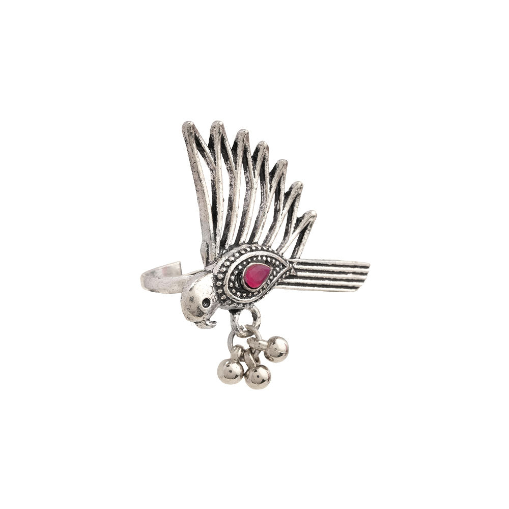 WingWonder oxidised stone studded ring (Red)