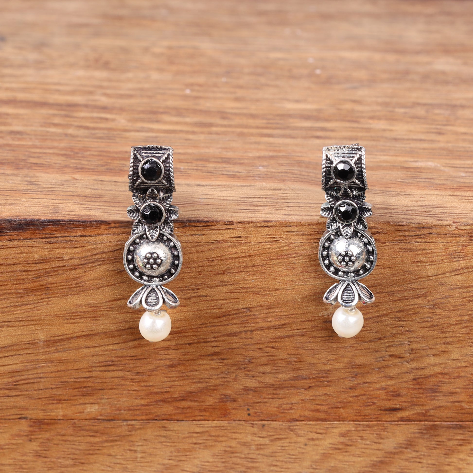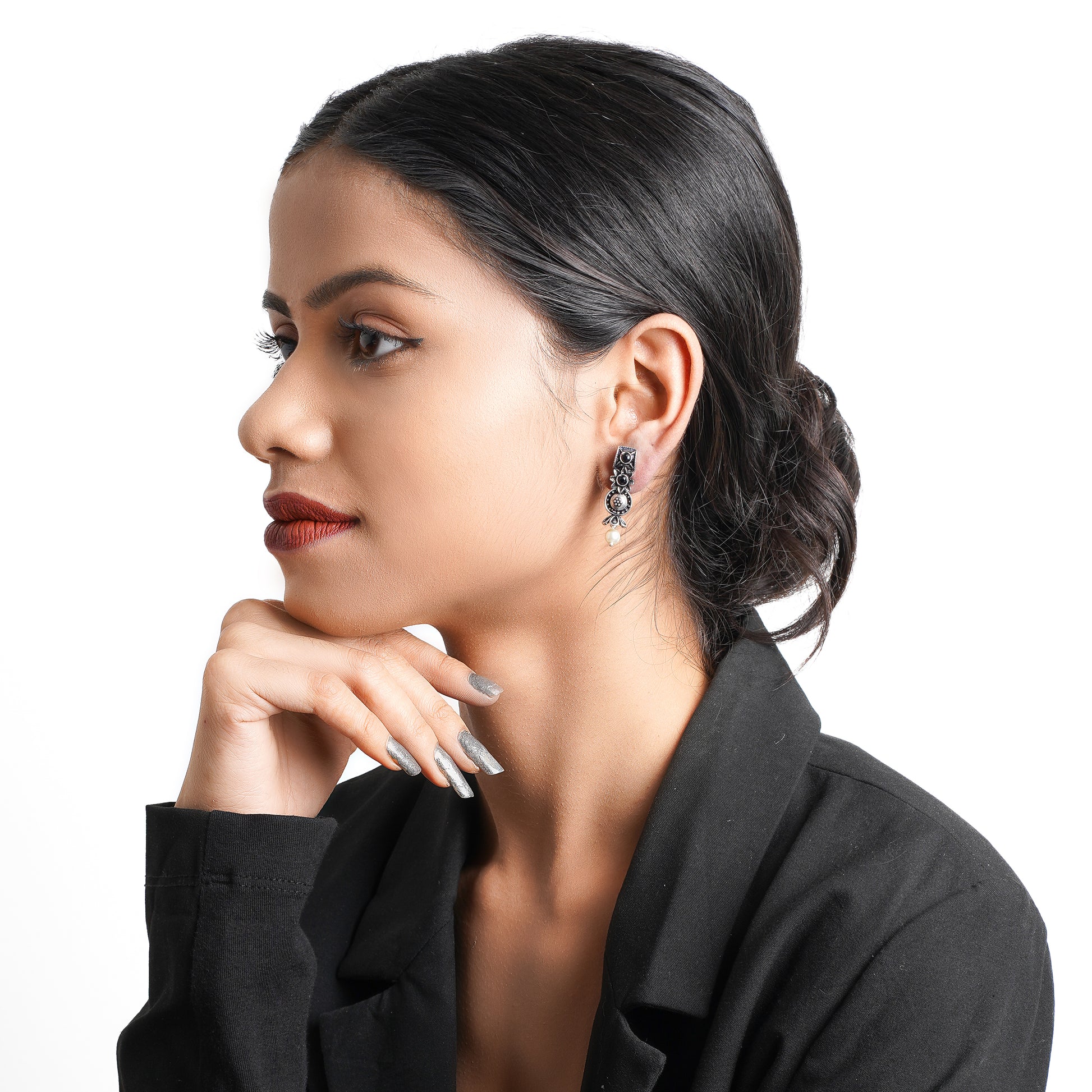 Regal silver pearl oxidised chain neckpiece (Silver)