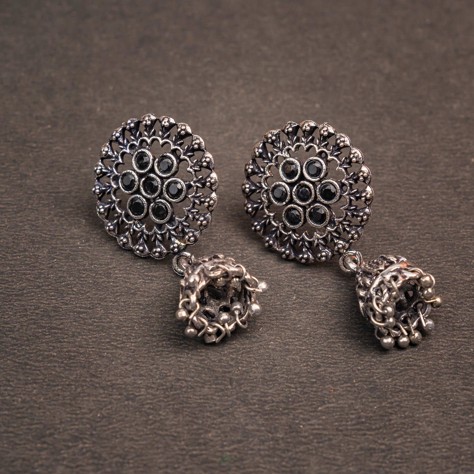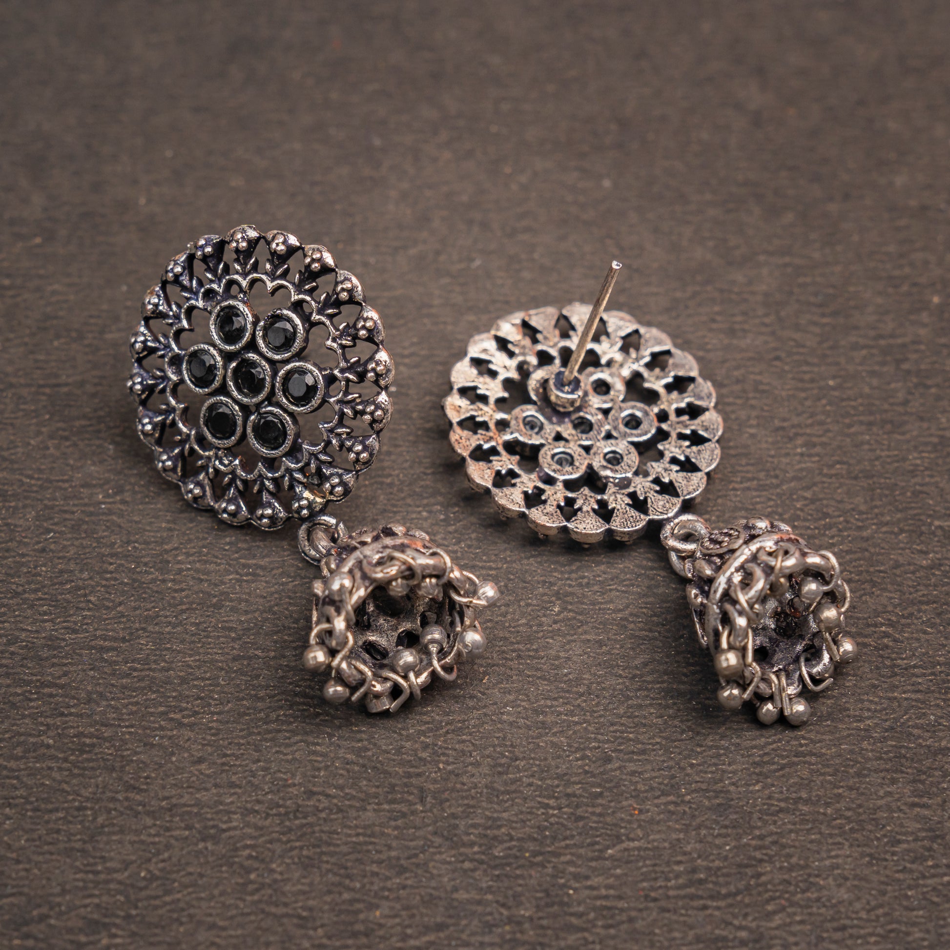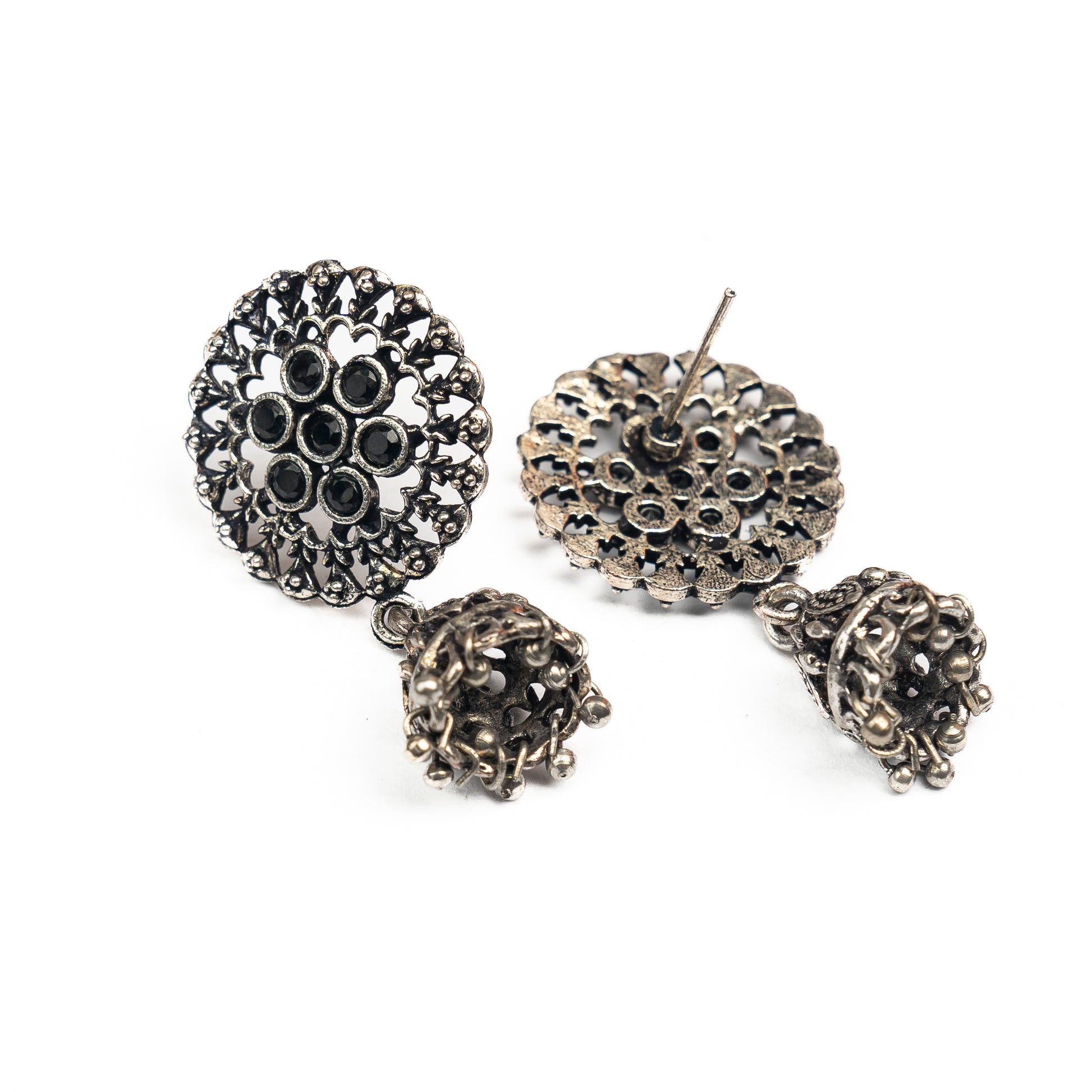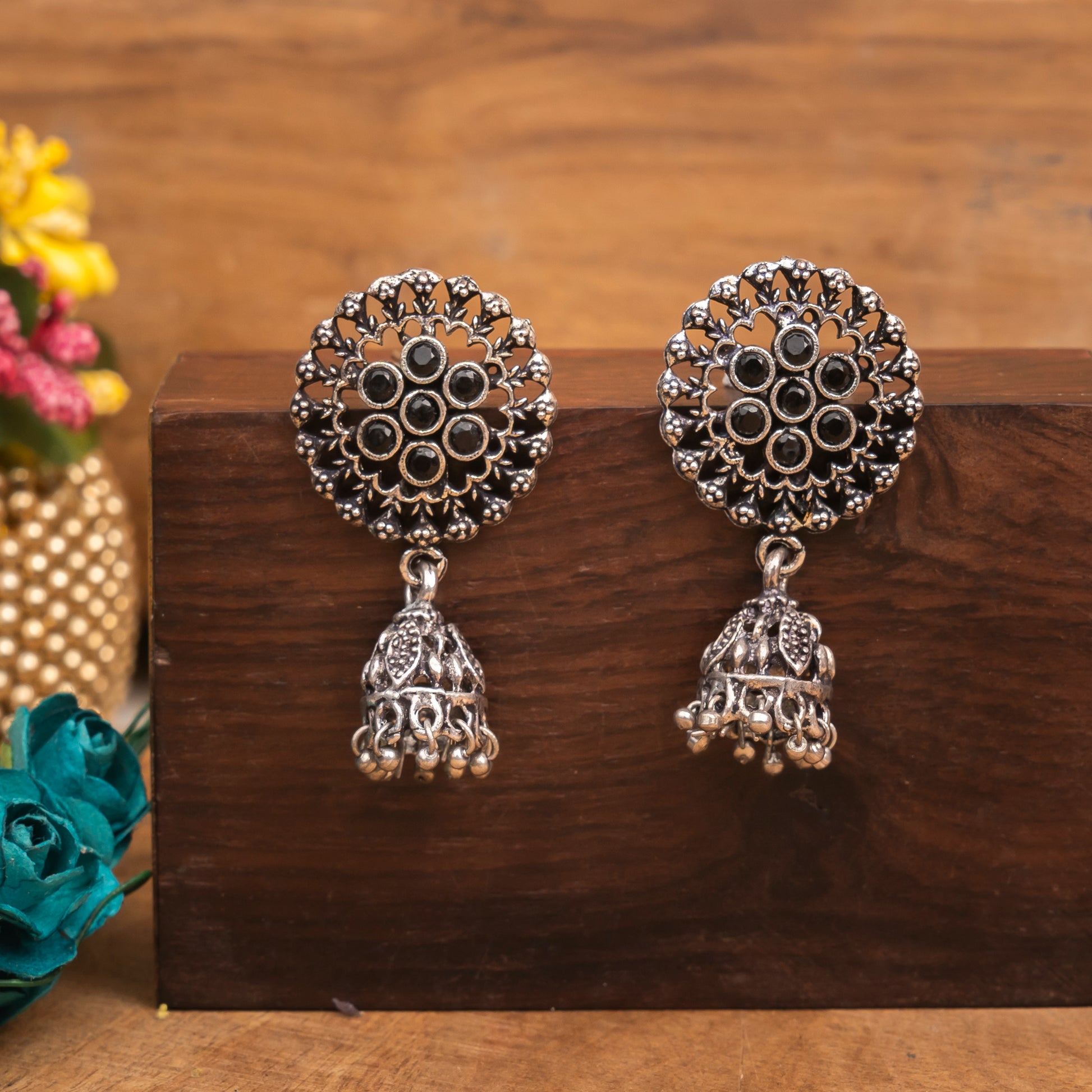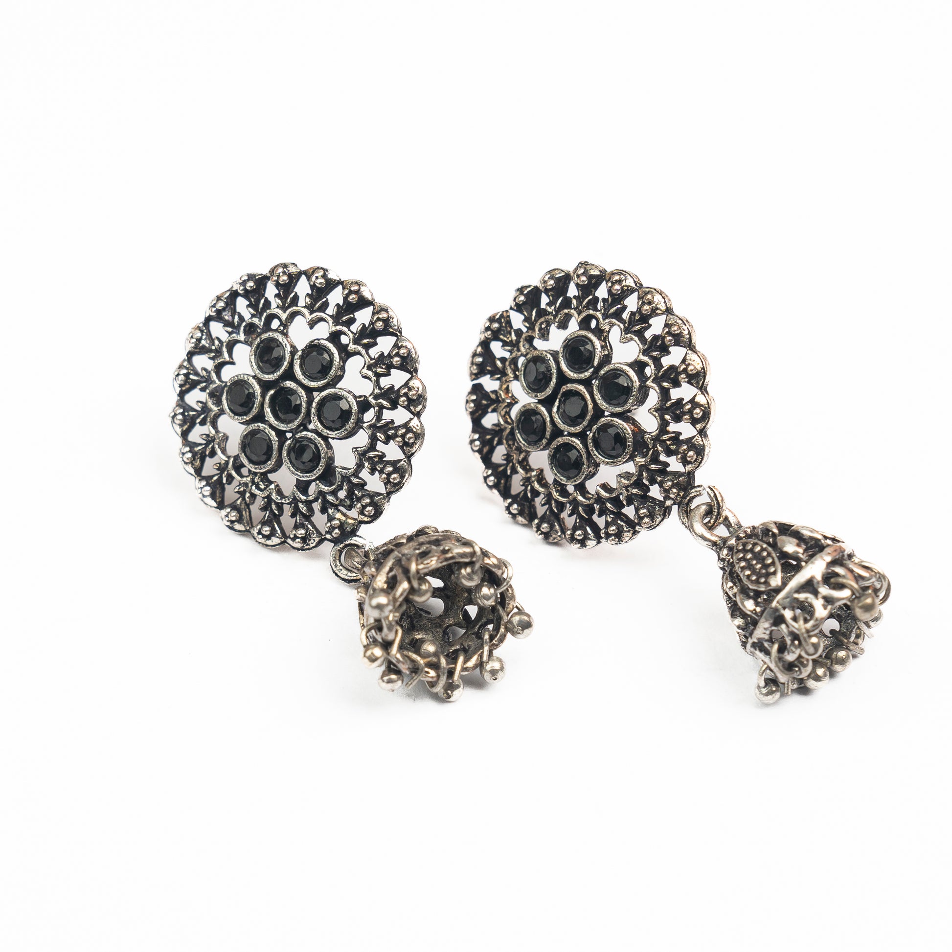 Royal Triple Bell Layered Jhumka Earring (Black)