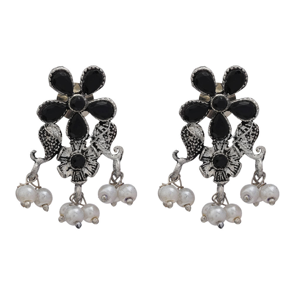 Floral Drop stud earrings (Black)
