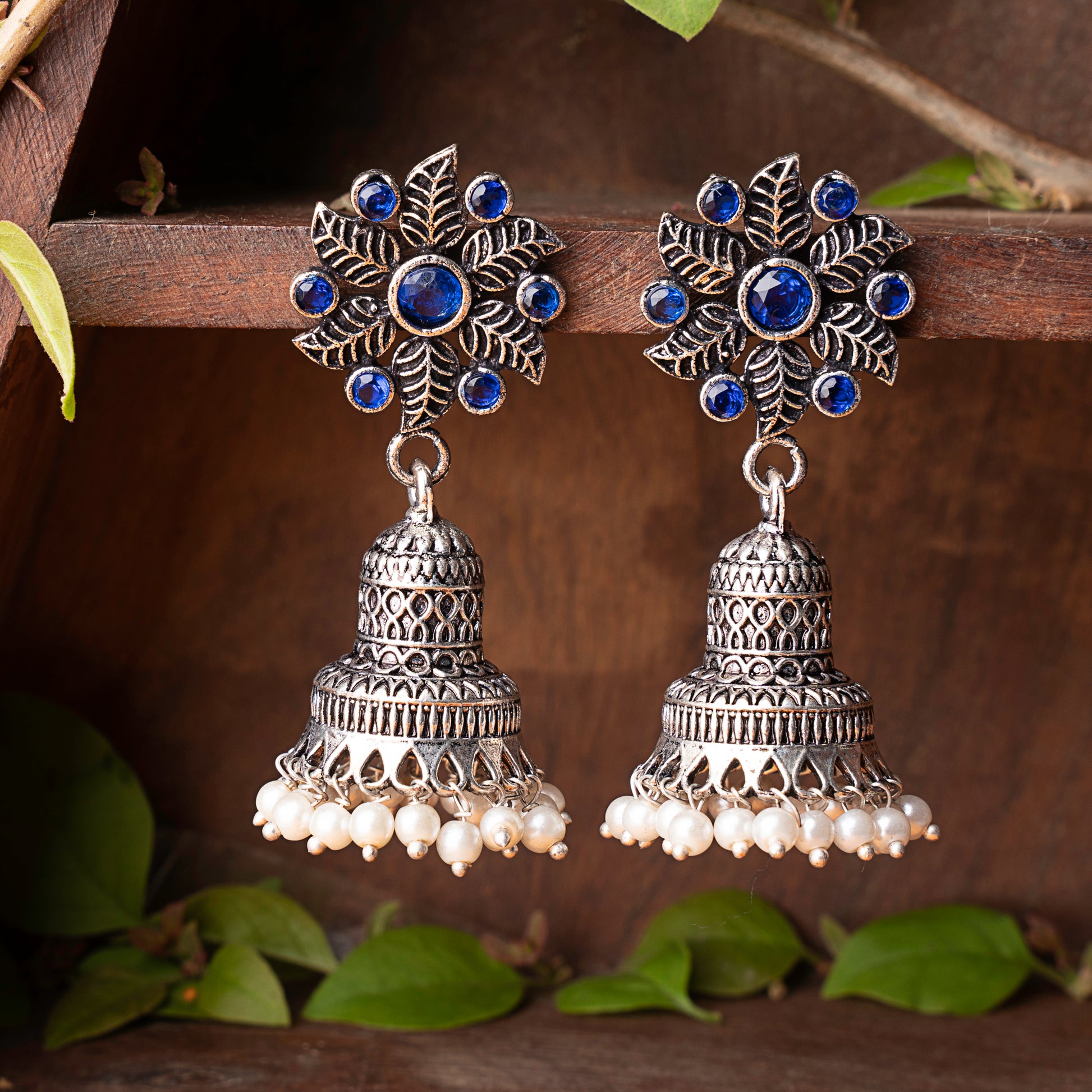 Fearless flower jhumki earring (Blue)