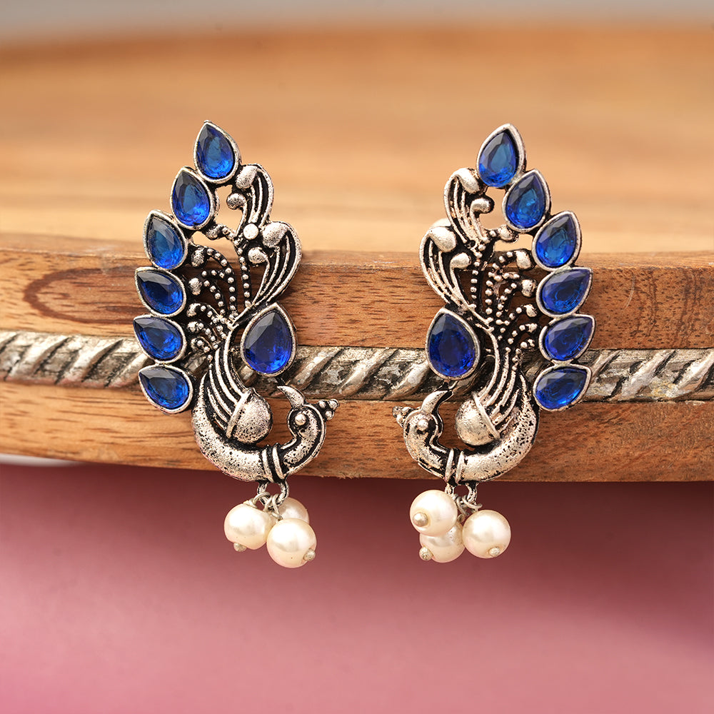 Peacock glow stone studded dangler earrings (Multicolored)