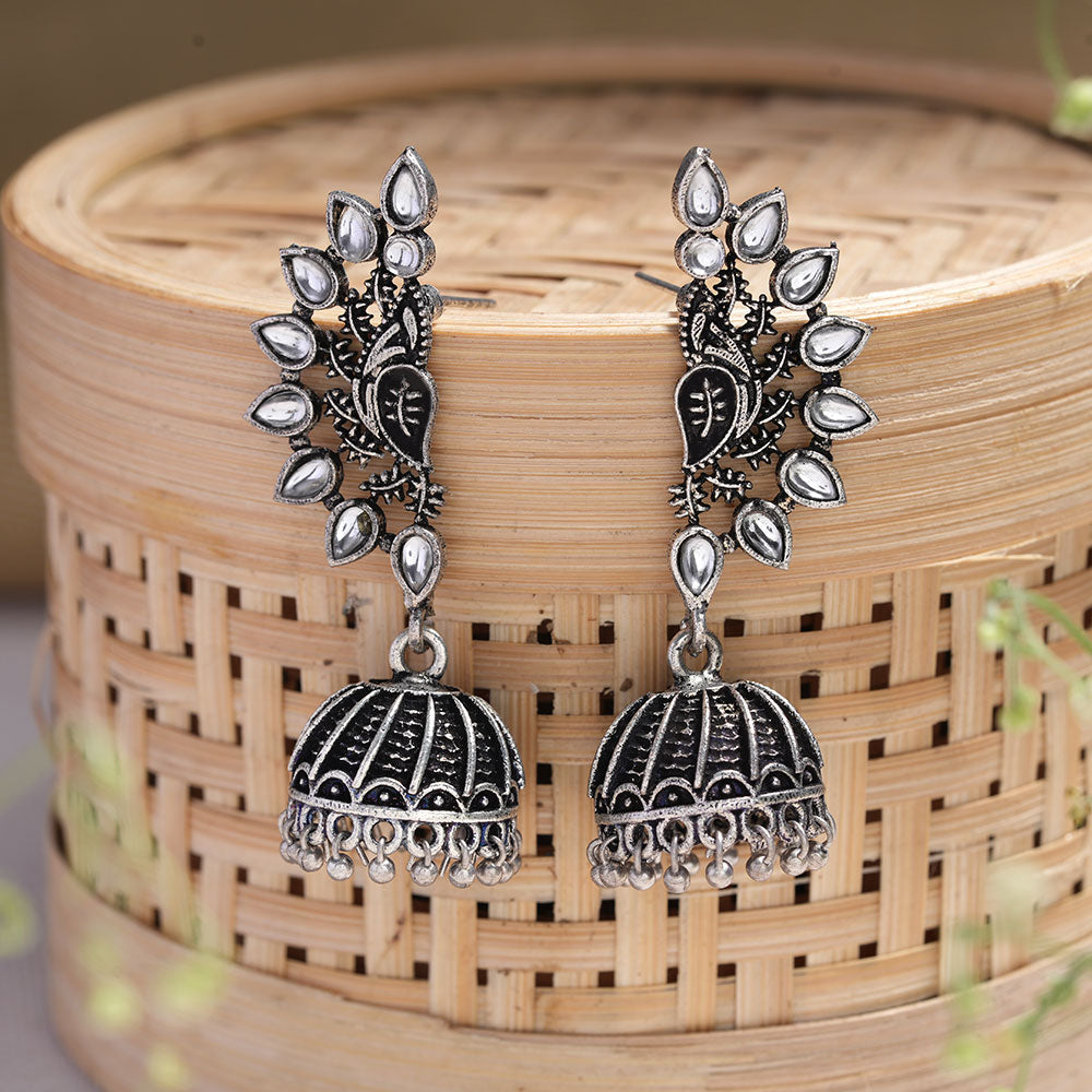Regal silver pearl oxidised chain neckpiece (Silver)