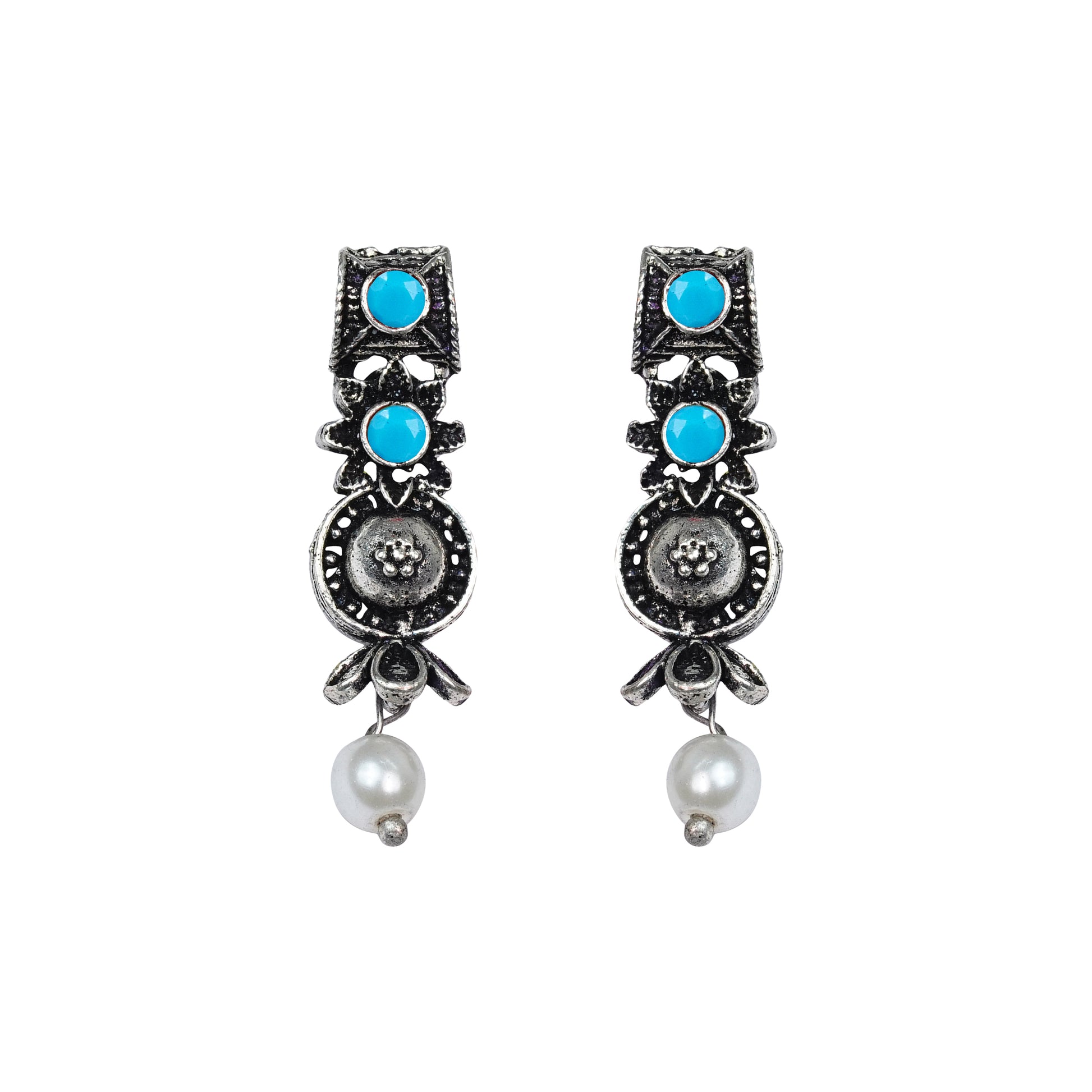 Wonderful wildflower oxidised stud earrings (Sky Blue)