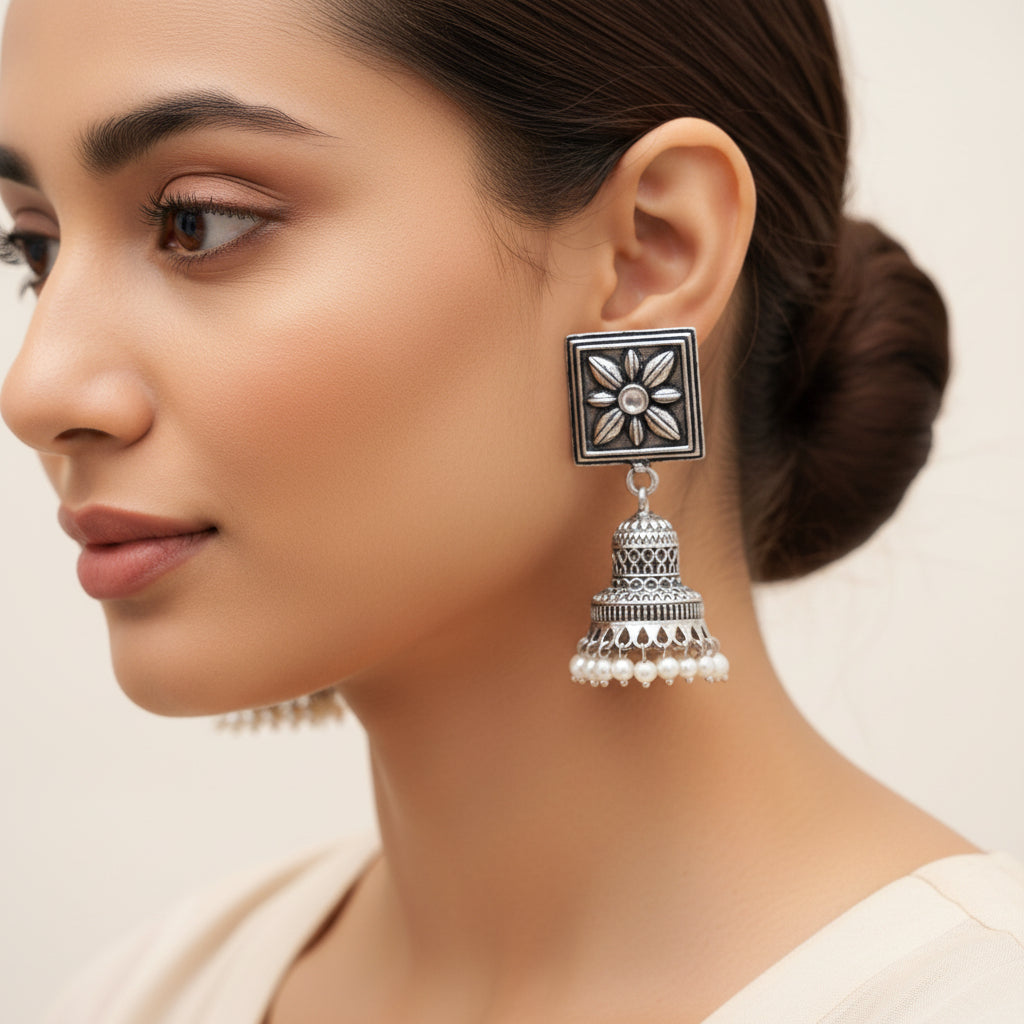Petal Frame hanging Jhumki Earrings (White)